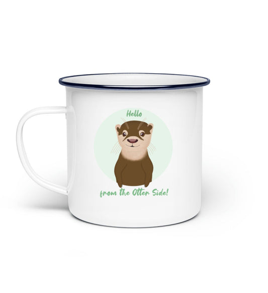 Hello from the Otter Side! | süße Emaille Tasse mit schwarzem Rand | perfekt für Otter-Fans | The Other Otter Shop