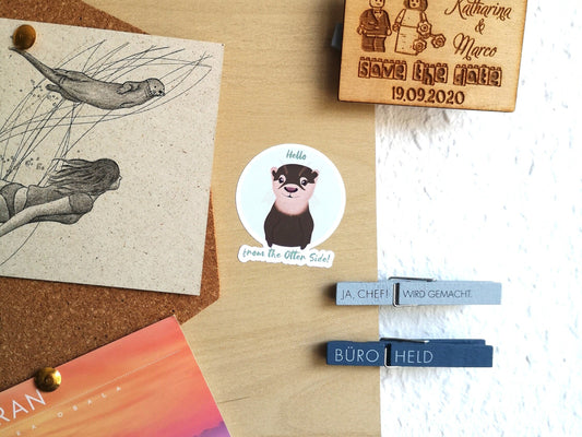 Hello from the Otter Side! - süßer Vinyl-Sticker mit dem kleinen Otter in grünem Kreis