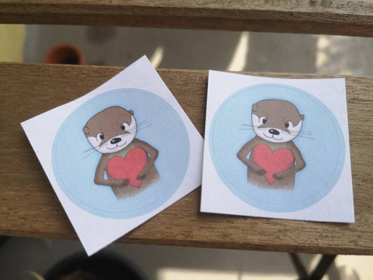 Otter mit Herz | 5 Sticker | Papieraufkleber | Rund